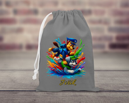 Pytlík má ve vrchní části stahovací šňůrku, potisk na pytlíku je nažehlovací, možno klasicky prát naruby na 60°C.